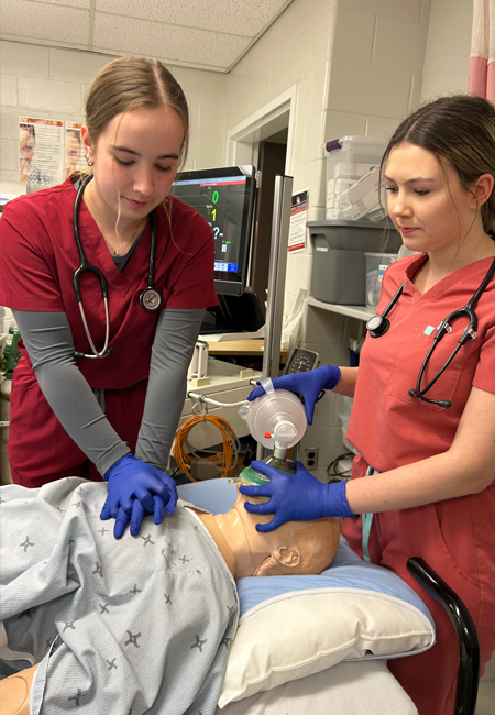 Deux étudiantes du programme Thérapie respiratoire en pleine action dans un laboratoire du CCNB.