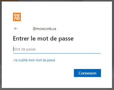 3 – Veuillez entrer votre mot de passe, ceci est le même mot de passe que vous utilisez pour votre compte @monccnb.ca.